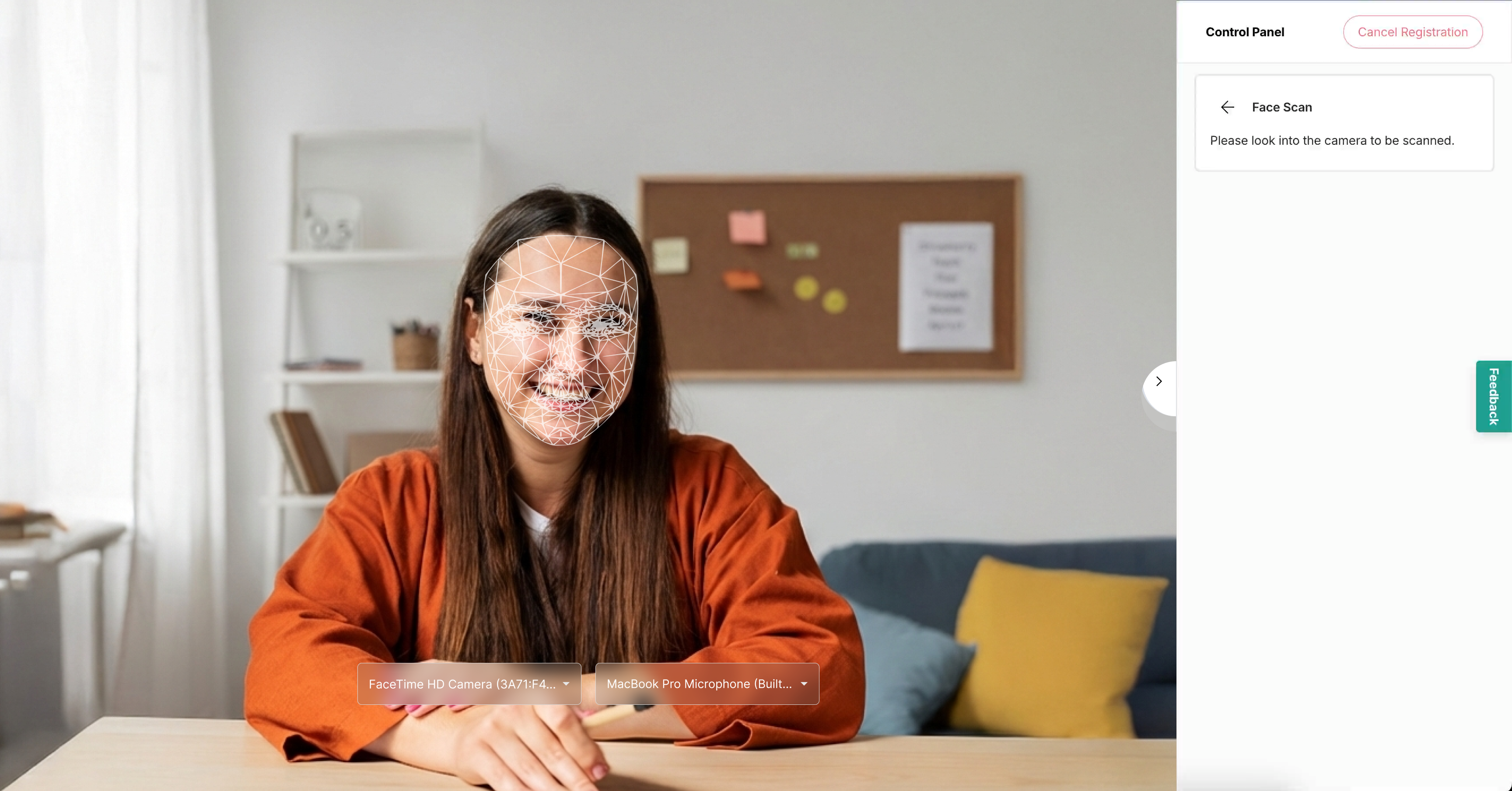 - Next is face registration. Click Start to begin the process.