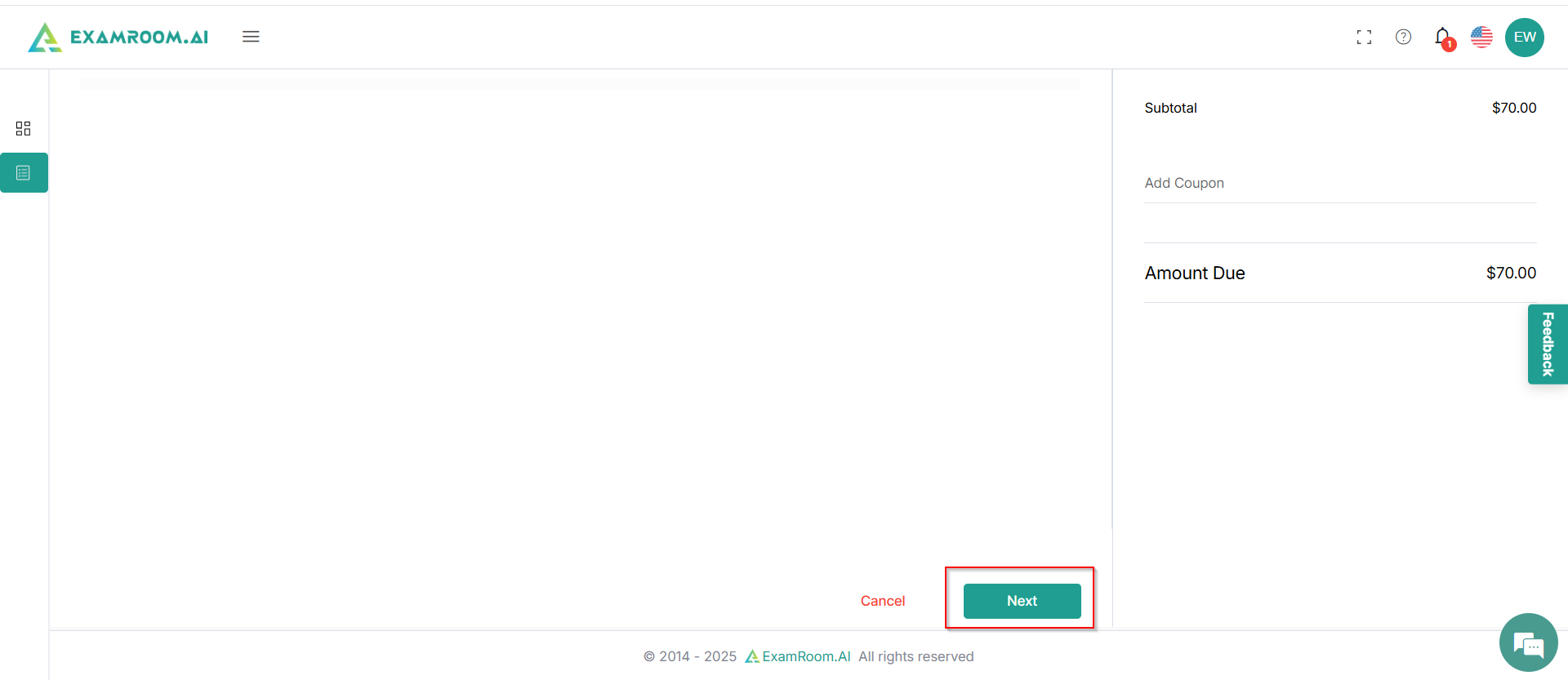 Review your cart details and scroll down to click Next to proceed.