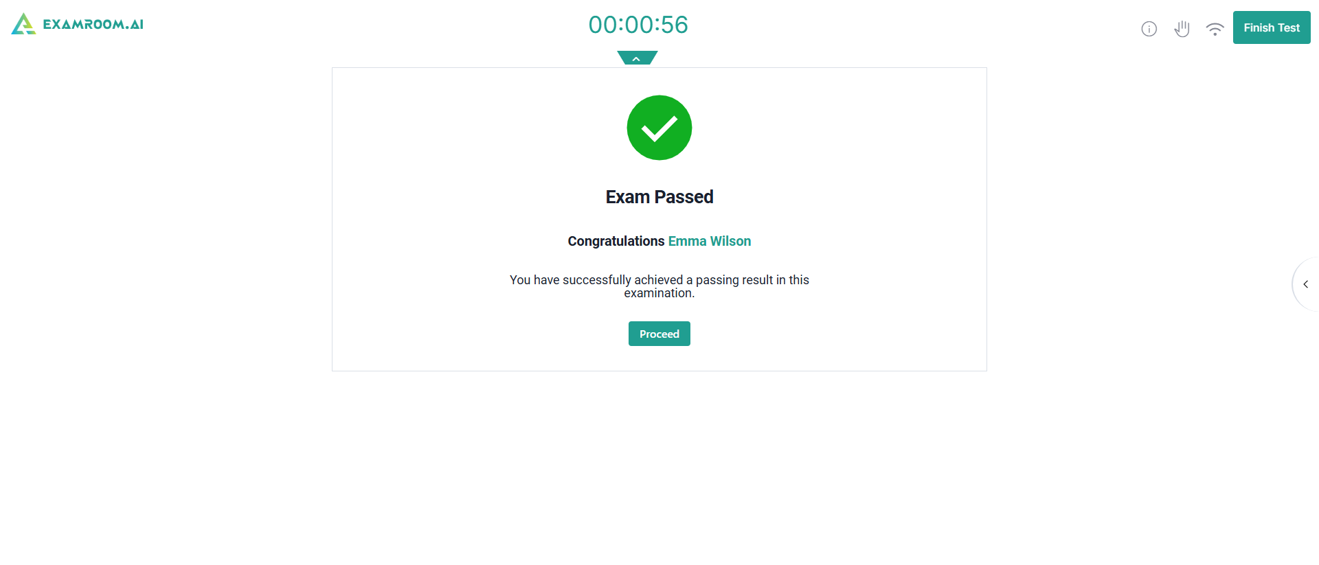 After submitting the test, if permitted by your exam sponsor, your results will be displayed. Click Proceed to go ahead.