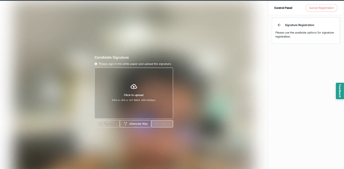 Next is signature registration. Click Start to begin the process.