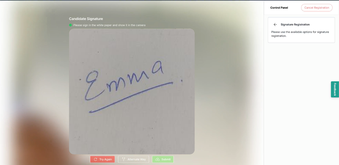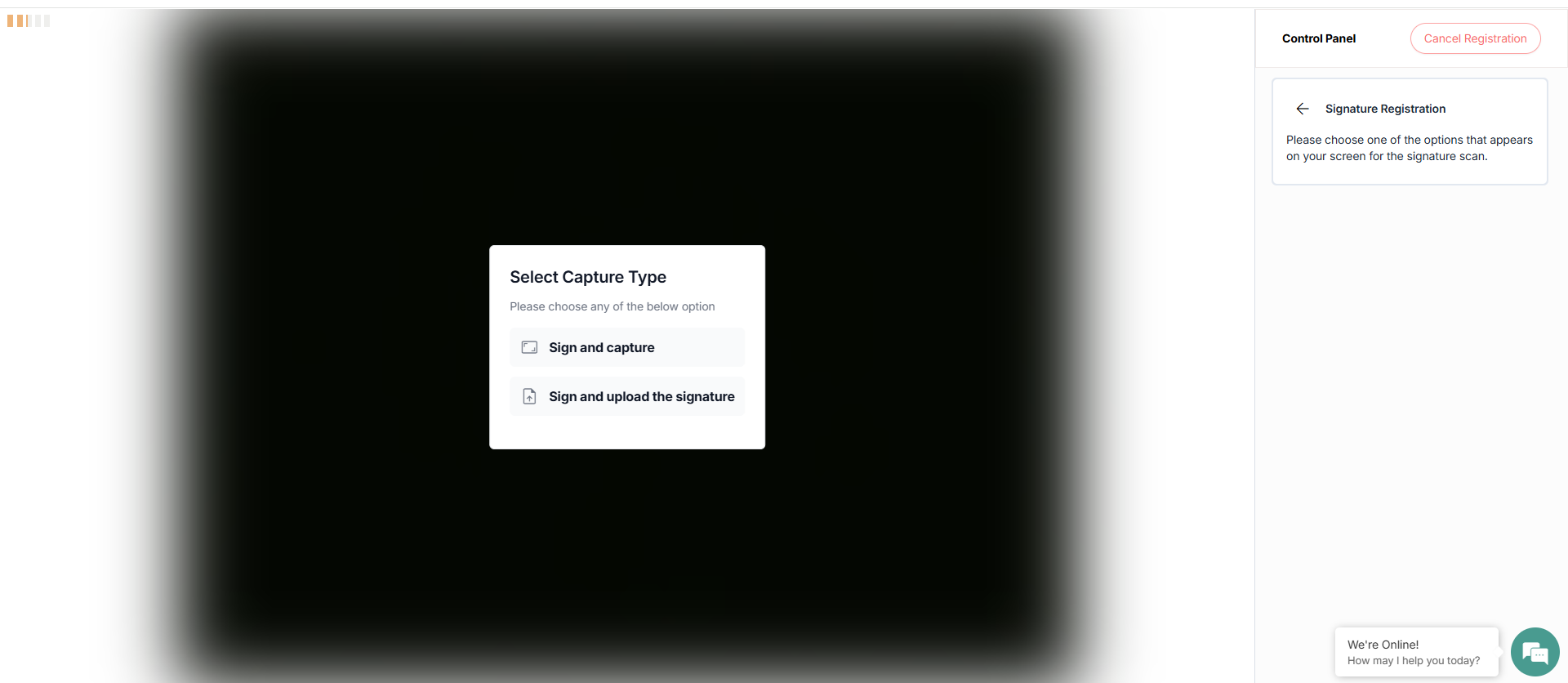 Option1: Sign and Capture. Once you select it, sign on a piece of paper and show it to the camera.
